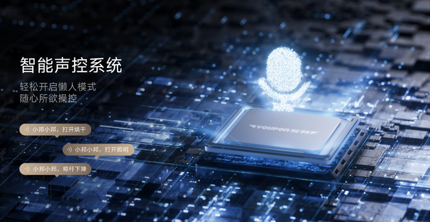 創(chuàng)新聲控技術(shù),無需聯(lián)網(wǎng)無需音箱,一句話即可控制晾衣機,解放雙手晾曬更便捷。